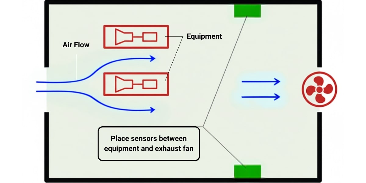For instance, avoid placing sensors "upwind" from any operating equipment. Installing sensors between the equipment and the exhaust fan is best practice.